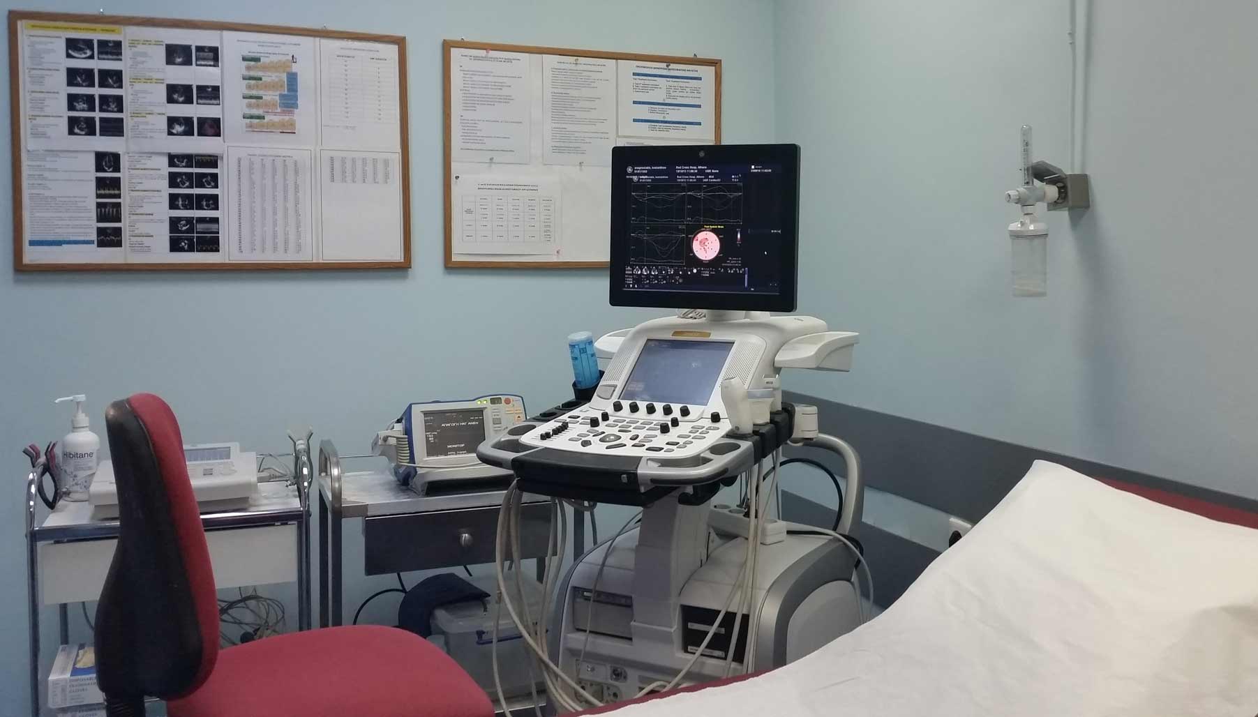 Our echocardiography service is staffed by 4 full time Cardiology Consultants, 2 full time Nurses, 4 clinical fellows and 4 trainees and performs over 8000 transthoracic scans per year. There are 4 static (GE E9, T8 and Vivid 3 and Philips ) and 1 hand held V-scan devices for use at the bedside by Cardiologists.